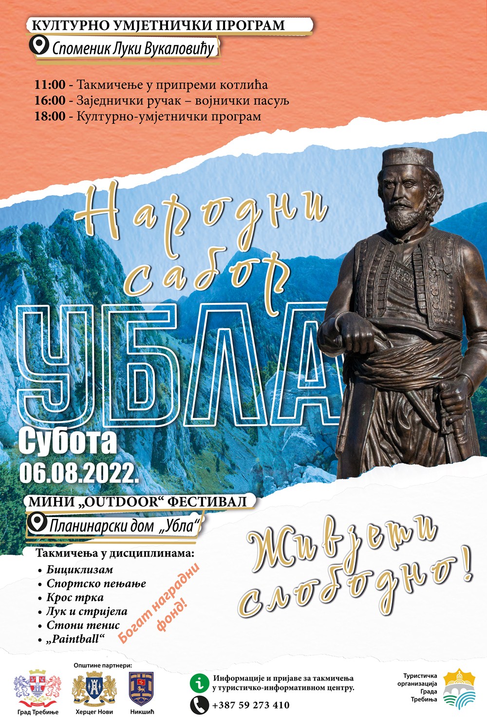 Град Требиње и Туристичкаорганизација ГрадаТребиња организујуТрадиционални народни сабор Зубачка Убла 2022, у суботу, 06.08.2022. године. Нови садржај сабора ове године биће Мини „Outdoor“ фестивал који укључује низ атрактивних такмичења у природи. Поред спортских, и ове године планирано је такмичење у припремању котлића, а биће уприличен и заједнички ручак за све посјетиоце.