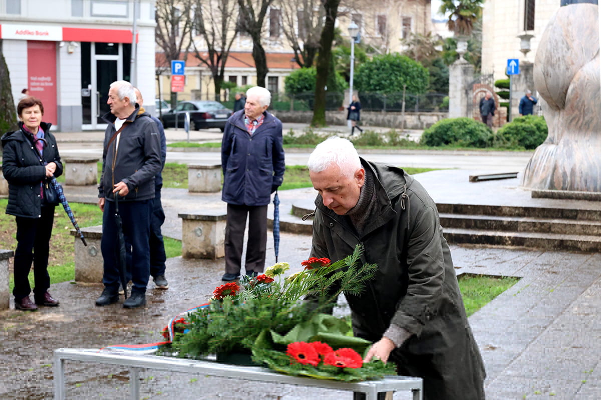 Делегације Градске управе Требиње и организација проистеклих из Одбрамбено-отаџбинског рата положиле су цвијеће код Споменика браниоцима Требиња.