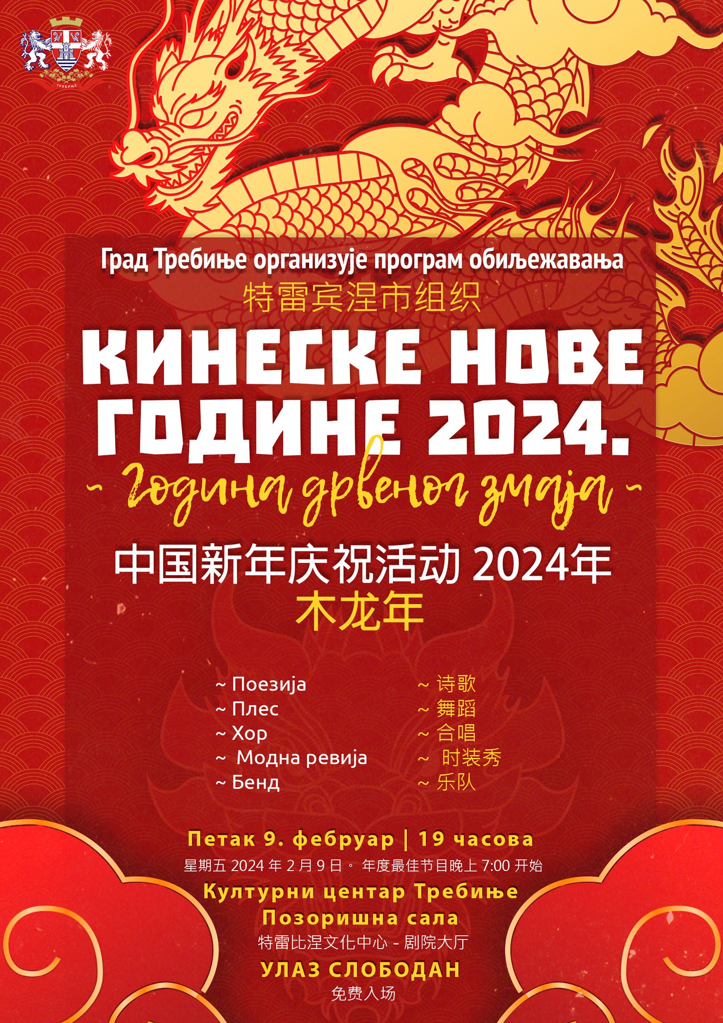 Град Требиње и ове године организује обиљежавање Кинеске нове године. Програм ће бити приређен у позоришној сали Културног центра у петак, 9. фебруара, са почетком у 19.00 часова.