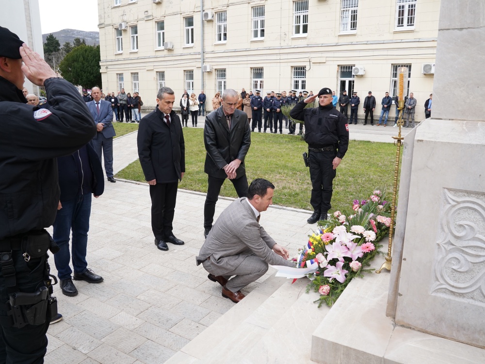 Цвијеће су положиле делегације Полицијске управе Требиње, Града Требиња, Борачке организације, представници Трећег пјешадијског Република Српска пука и Конзуларне канцеларије Републике Србије.