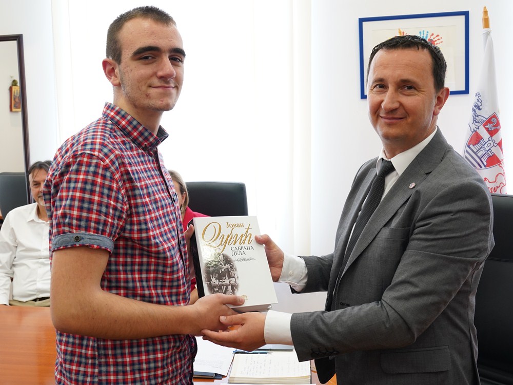 Њему је градоначелник уручио сабрана дјела пјесника Јована Дучића и пожелио успјех на математичкој олимпијади у Јапану.